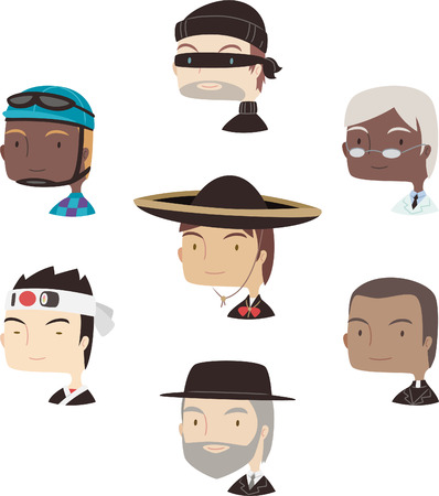 頭と肩人アバター プロフィール女性帽子コレクション セット ベクトル イラスト のイラスト素材 ベクタ Image